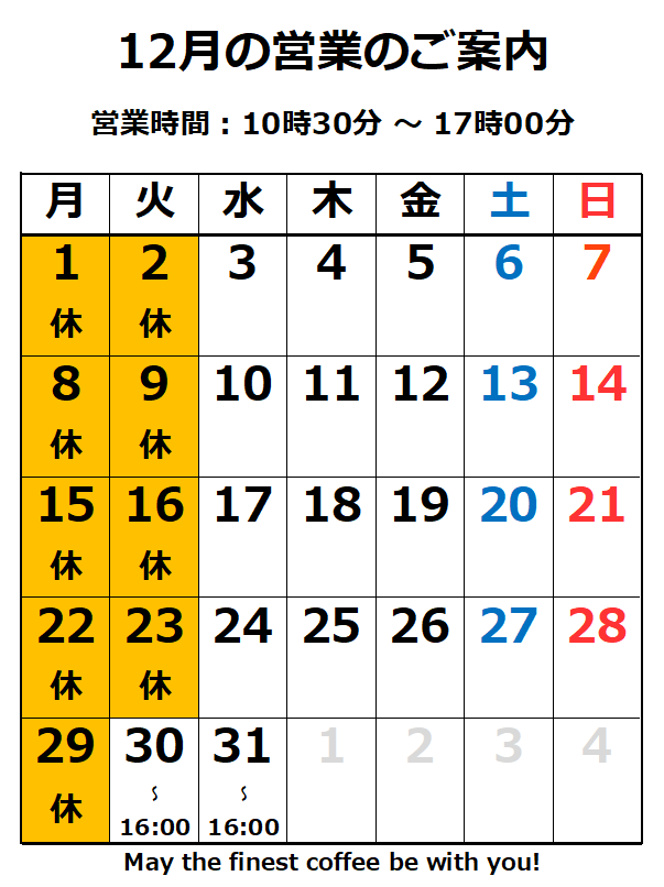 | 2025.11.30 | 12月の営業日カレンダーを更新しました。 |